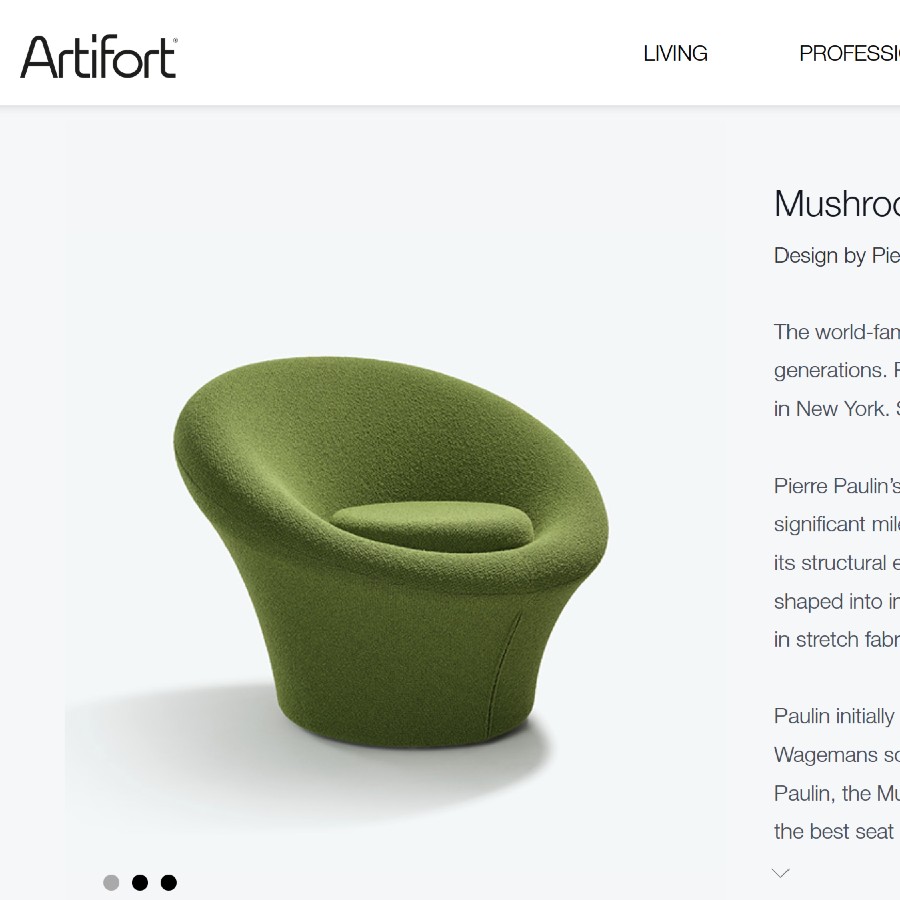 Pierre Paulin’s first collaboration with Artifort, the Mushroom® Chair, marks a significant milestone in furniture design. It was the first design to fully conceal its structural elements within a single, sculptural form. A tubular metal frame, shaped into interconnected circular forms, is padded with foam and covered in stretch fabric—an innovative approach at the time. Paulin initially experimented with swimsuit fabrics before Artifort’s Harry Wagemans sourced a durable, elastic upholstery material. According to Paulin, the Mushroom® Chair was “economically, mechanically, financially…the best seat I have created.”. The Mushroom Chair is more than just a piece of furniture; it is a tangible manifesto of the modernist ideals of the 1960s, playful, comfortable, and groundbreaking in both form and use of materia.