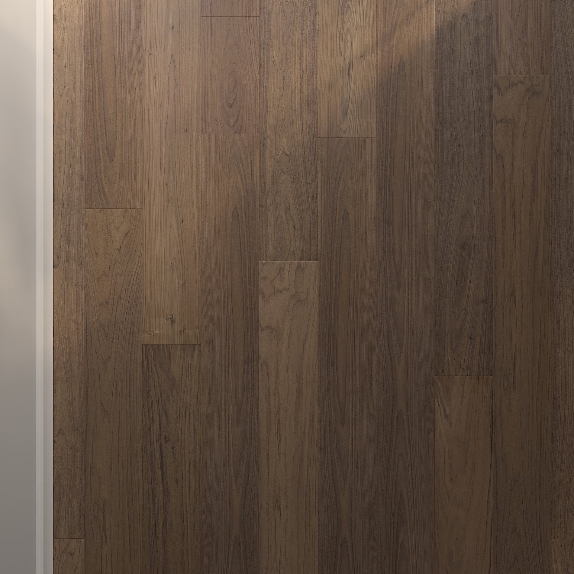 3D seamless texture and Sketchup model with the wooden floor Ebony and Co American Walnut Fixed Widht 28cm Pure Ultramatt Poly. The 3D floor is ready to use in your 3D drawing. Reflection, gloss and bump layers are added.